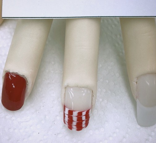 -프리엣지 단면까지 바르는 것이 중요하다고 하여 프리엣지 단면을 바를 때는 저 프리엣지 단면까지 바르고 있습니다를 보여주기 위해 프리엣지 단면과 시선을 마주하며 발랐다. 심사는 마지막에 미경화 젤이 남았는지 슥 만져보며 확인을 하셨다.