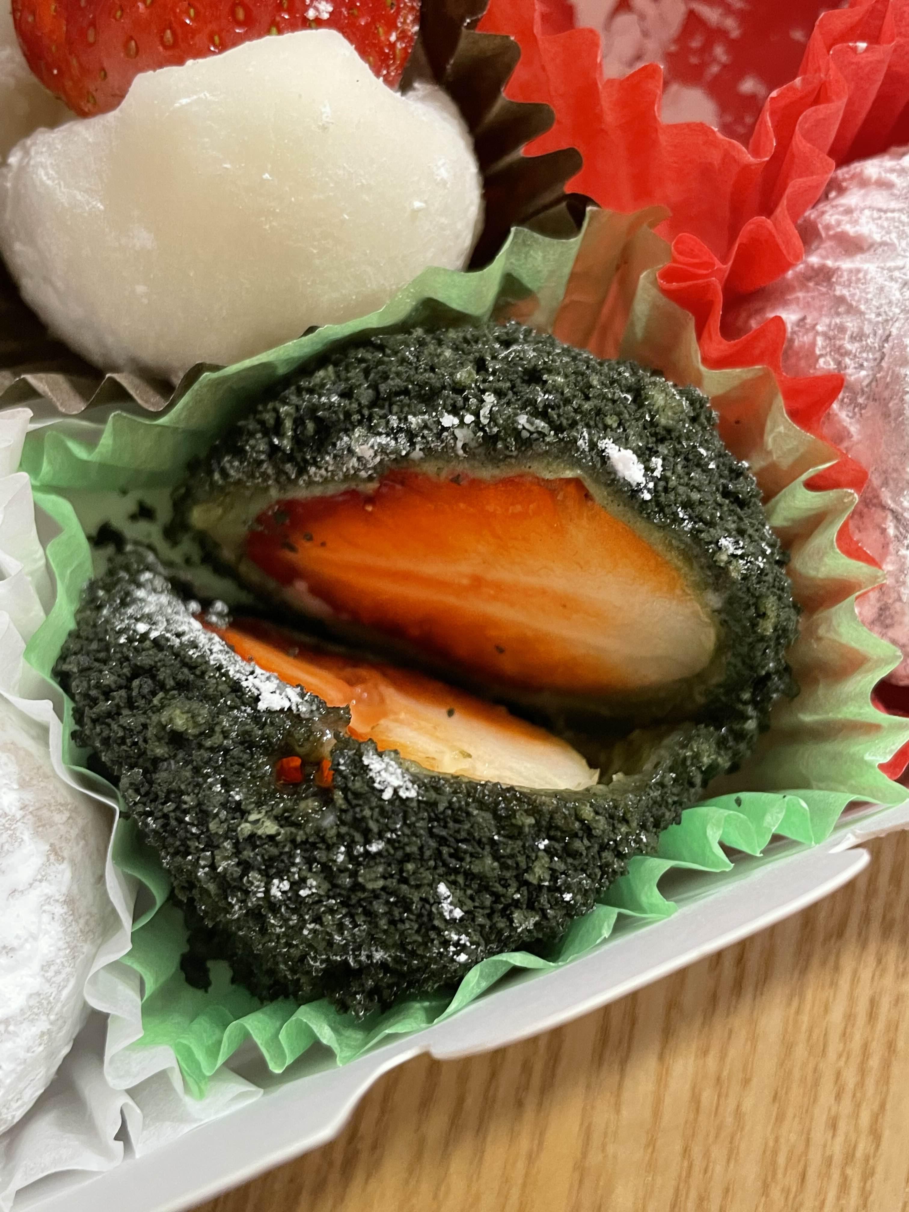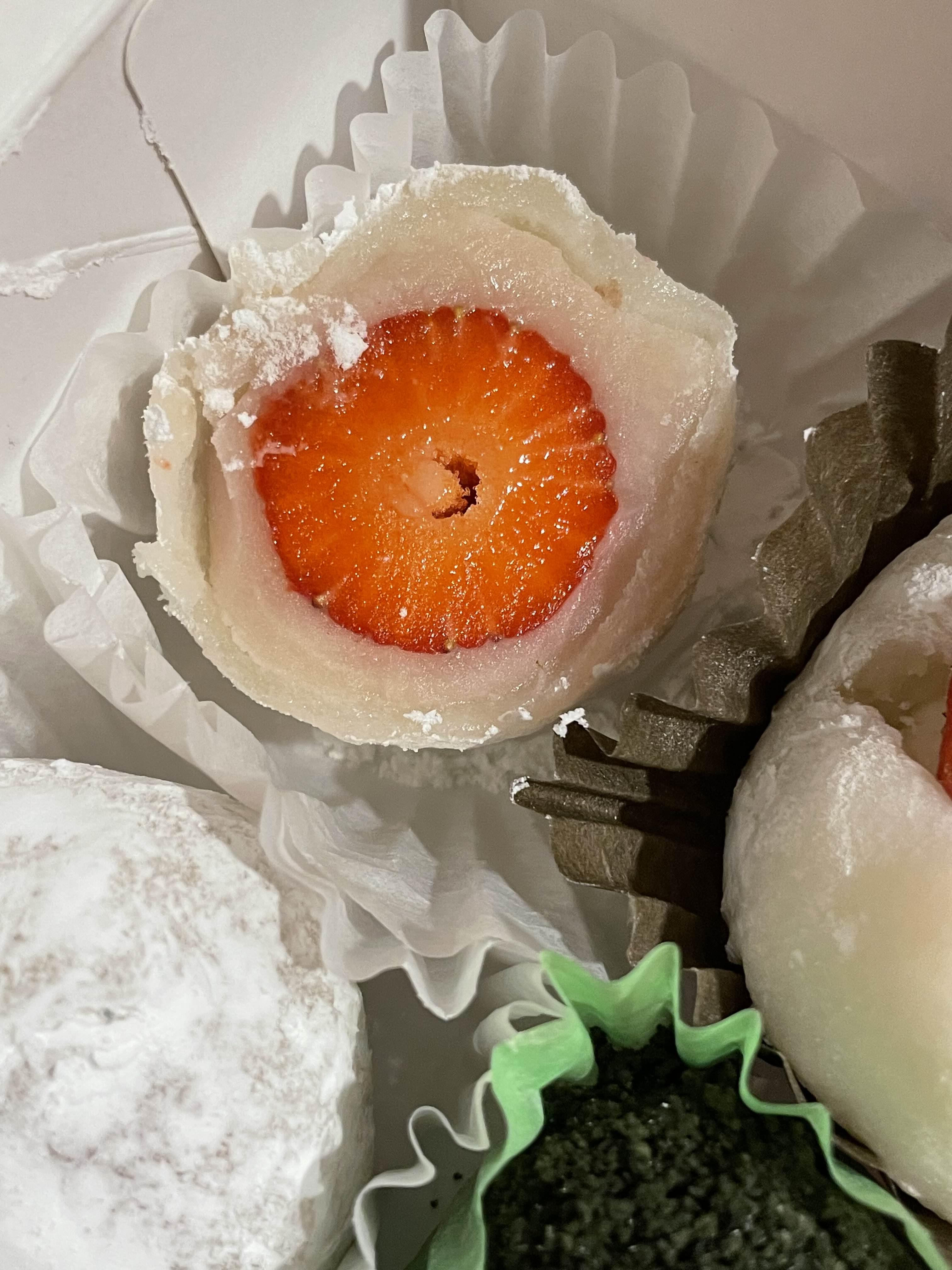그래서 그런지 다른 찹쌀떡들에 비해 작은 딸기를 넣은 것 같았다. 작은 딸기로 앙금의 맛이 훨씬 많이 느껴지는 찹쌀떡였다.
